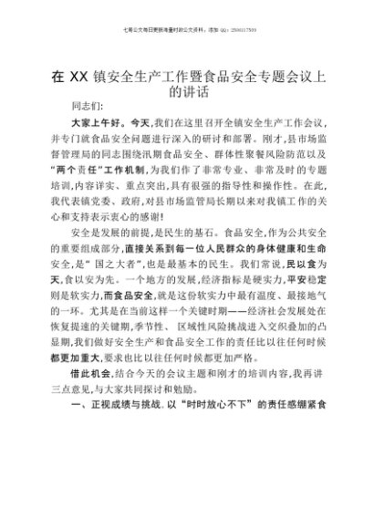 / 【七哥公文】2025年:在XX镇安全生产工作暨食品安全专题会议上的讲话+更多免费公文+VX:QiGeGongWen2024