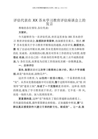 【七哥公文】2025年:评估代表在XX苏木贯彻中央八项规定精神学习教育评估座谈会上的发言2+更多免费公文+VX:QiGeGongWen2024