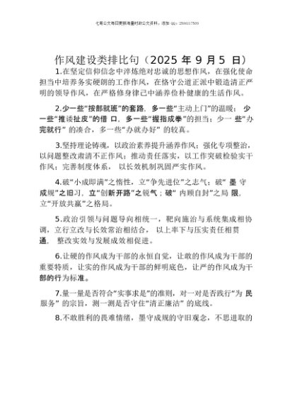 / 【七哥公文】2025年:作风建设类排比句(2025年9月5日)+更多免费公文+VX:QiGeGongWen2024