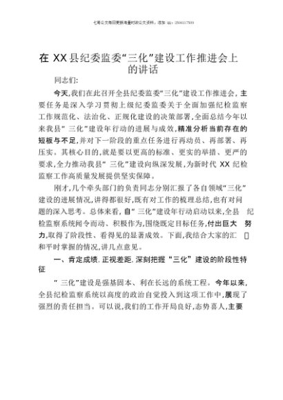 / 【七哥公文】2025年:在XX县纪委监委“三化”建设工作推进会上的讲话+更多免费公文+VX:QiGeGongWen2024