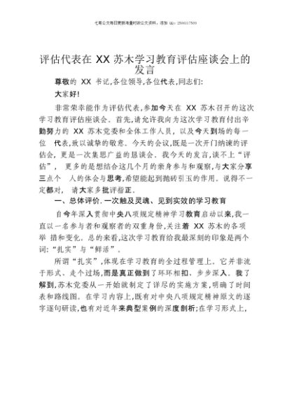 【七哥公文】2025年:评估代表在XX苏木贯彻中央八项规定精神学习教育评估座谈会上的发言1+更多免费公文+VX:QiGeGongWen2024