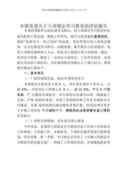 / 【七哥公文】2025年:乡镇党委关于八项规定学习教育的评估报告+更多免费公文+VX:QiGeGongWen2024