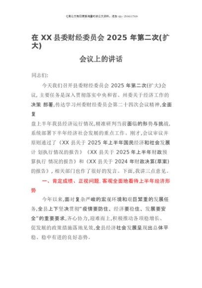 【七哥公文】2025年:在XX县委财经委员会2025年第二次(扩大)会议上的讲话+更多免费公文+VX:QiGeGongWen2024