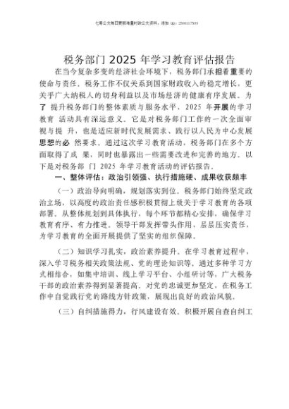 【七哥公文】2025年:税务部门2025年贯彻中央八项规定精神学习教育评估报告+更多免费公文+VX:QiGeGongWen2024