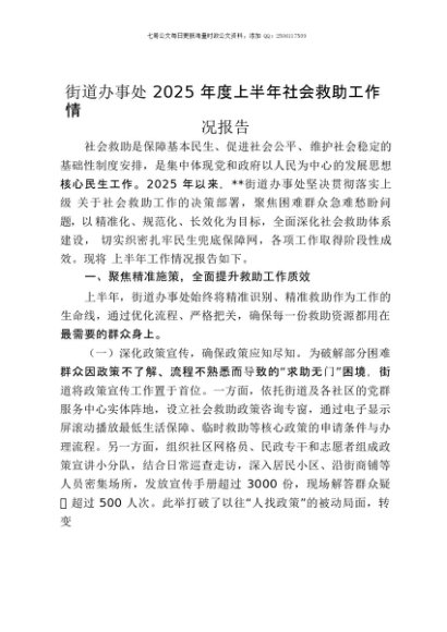 【七哥公文】2025年:街道办事处2025年度上半年社会救助工作情况报告+更多免费公文+VX:QiGeGongWen2024