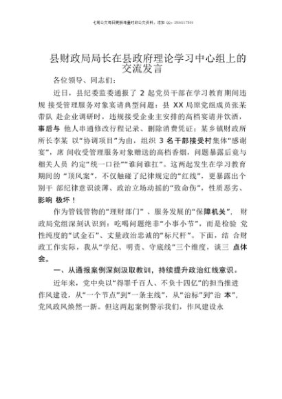 / 【七哥公文】2025年:县财政局局长在县政府理论学习中心组上的交流发言+更多免费公文+VX:QiGeGongWen2024