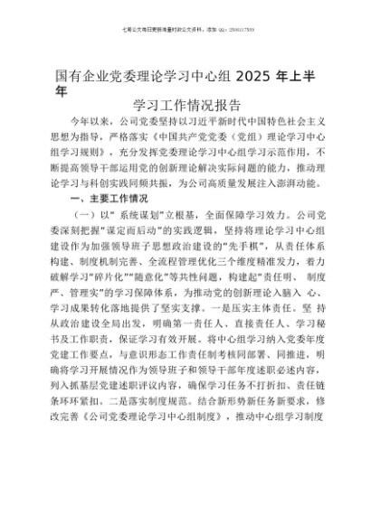 【七哥公文】2025年:国有企业党委理论学习中心组2025年上半年学习工作情况报告+更多免费公文+VX:QiGeGongWen2024