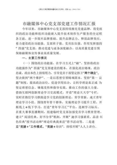 / 【七哥公文】2025年:市融媒体中心党支部党建工作情况汇报+更多免费公文+VX:QiGeGongWen2024