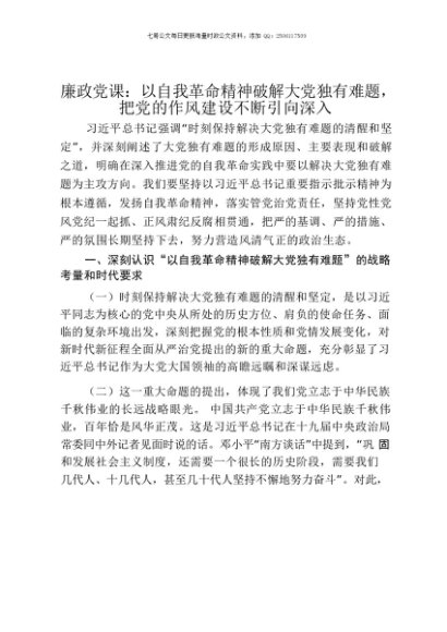 【七哥公文】2025年:廉政党课讲稿:以自我革命精神破解大党独有难题,把党的作风建设不断引向深入+更多免费公文+VX:QiGeGongWen2024