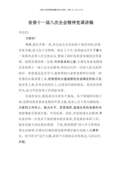 / 【七哥公文】2025年:省委十一届八次全会精神党课讲稿+更多免费公文+VX:QiGeGongWen2024