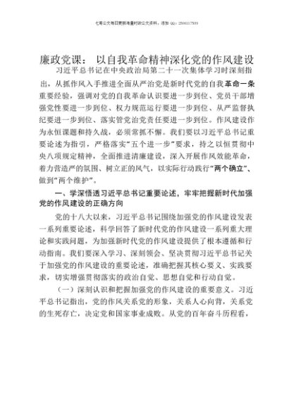/ 【七哥公文】2025年:廉政党课讲稿:以自我革命精神深化党的作风建设+更多免费公文+VX:QiGeGongWen2024
