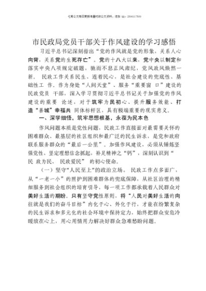 【七哥公文】2025年:市民政局党员干部关于作风建设的学习感悟+更多免费公文+VX:QiGeGongWen2024