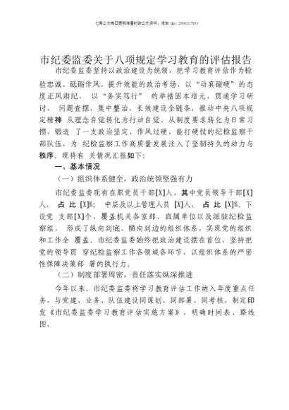 / 【七哥公文】2025年:市纪委监委关于八项规定学习教育的评估报告+更多免费公文+VX:QiGeGongWen2024