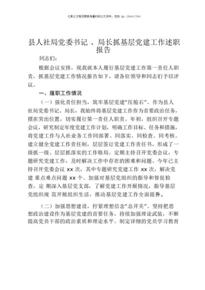 / 【七哥公文】2025年:县人社局党委书记、局长抓基层党建工作述职报告+更多免费公文+VX:QiGeGongWen2024