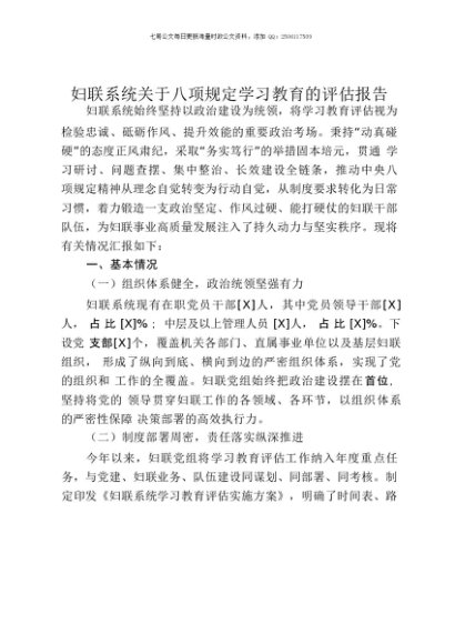 【七哥公文】2025年:妇联系统关于贯彻中央八项规定精神学习教育的评估报告+更多免费公文+VX:QiGeGongWen2024