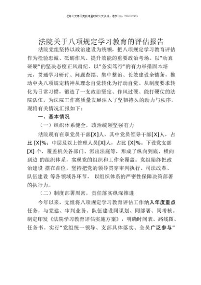 / 【七哥公文】2025年:法院关于八项规定学习教育的评估报告+更多免费公文+VX:QiGeGongWen2024