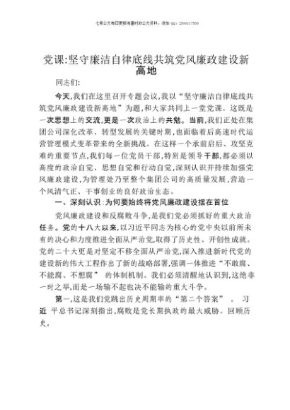 【七哥公文】2025年:党课讲稿:坚守廉洁自律底线共筑党风廉政建设新高地+更多免费公文+VX:QiGeGongWen2024