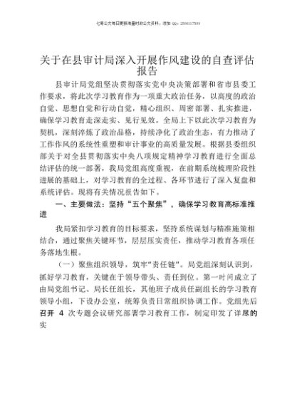 / 【七哥公文】2025年:关于在县审计局深入开展作风建设的自查评估报告+更多免费公文+VX:QiGeGongWen2024