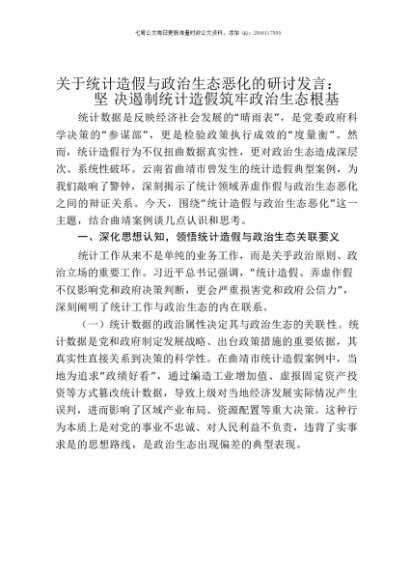 【七哥公文】2025年:关于统计造假与政治生态恶化的研讨发言:坚决遏制统计造假筑牢政治生态根基+更多免费公文+VX:QiGeGongWen2024