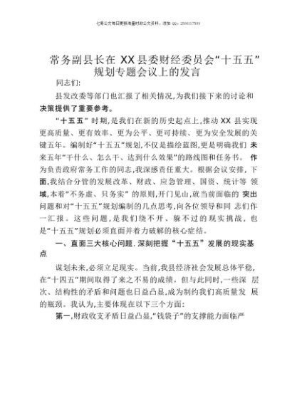 【七哥公文】2025年:常务副县长在XX县委财经委员会“十五五”规划专题会议上的发言+更多免费公文+VX:QiGeGongWen2024