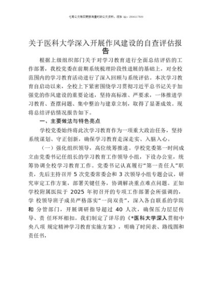 / 【七哥公文】2025年:关于医科大学深入开展作风建设的自查评估报告+更多免费公文+VX:QiGeGongWen2024