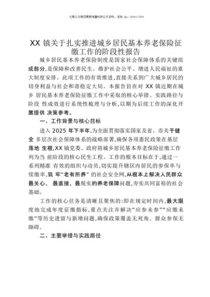 【七哥公文】2025年:XX镇关于扎实推进城乡居民基本养老保险征缴工作的阶段性报告+更多免费公文+VX:QiGeGongWen2024