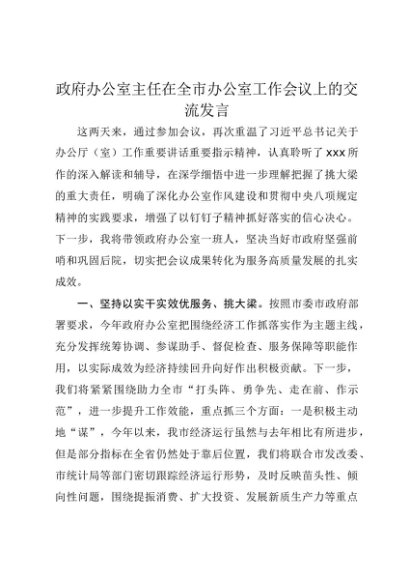 / 【七哥公文】2025年:政府办公室主任在全市办公室工作会议上的交流发言+更多免费公文+VX:QiGeGongWen2024