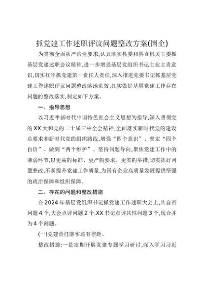/ 【七哥公文】2025年:抓党建工作述职评议问题整改方案(国企)+更多免费公文+VX:QiGeGongWen2024