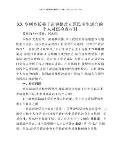 【七哥公文】2025年:XX乡副乡长关于巡察整改专题民主生活会的个人对照检查材料+更多免费公文+VX:QiGeGongWen2024