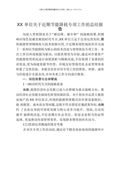 / 【七哥公文】2025年:XX单位关于近期节能降耗专项工作的总结报告+更多免费公文+VX:QiGeGongWen2024