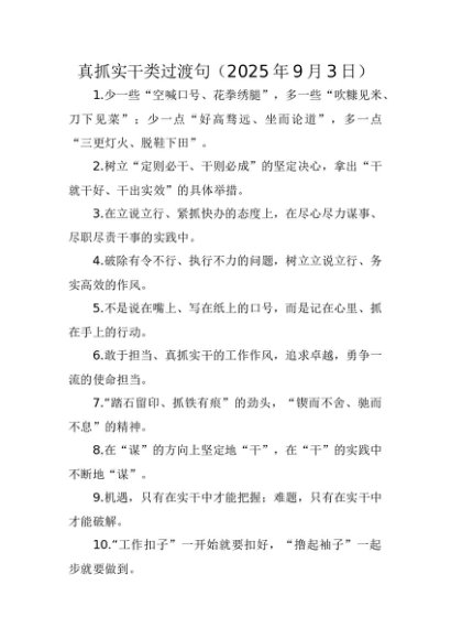 / 【七哥公文】2025年:真抓实干类过渡句(2025年9月3日)+更多免费公文+VX:QiGeGongWen2024
