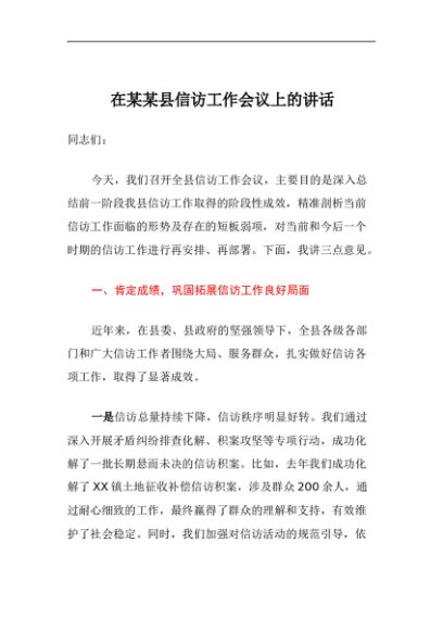 / 【七哥公文】2025年:在某某县信访工作会议上的讲话+更多免费公文+VX:QiGeGongWen2024
