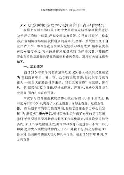 【七哥公文】2025年:XX县乡村振兴局中央八项规定精神学习教育的自查评估报告+更多免费公文+VX:QiGeGongWen2024