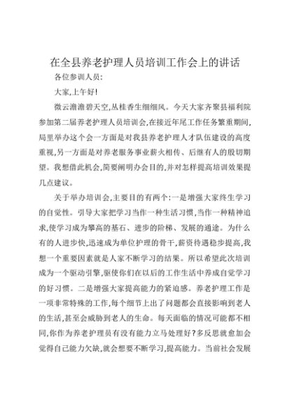 / 【七哥公文】2025年:在全县养老护理人员培训工作会上的讲话+更多免费公文+VX:QiGeGongWen2024