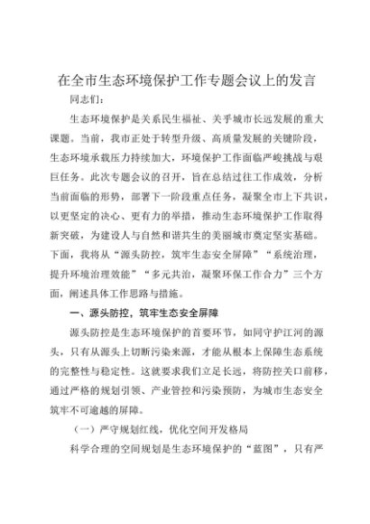/ 【七哥公文】2025年:在全市生态环境保护工作专题会议上的发言2+更多免费公文+VX:QiGeGongWen2024