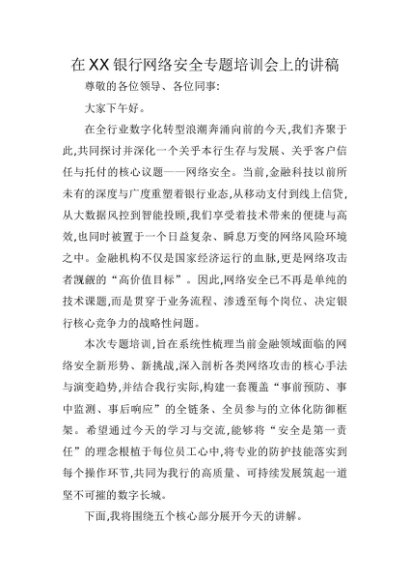 / 【七哥公文】2025年:在XX银行网络安全专题培训会上的讲稿+更多免费公文+VX:QiGeGongWen2024
