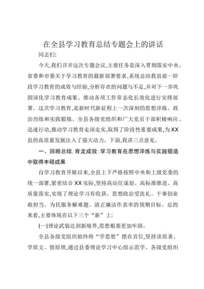 【七哥公文】2025年:在全县贯彻中央八项规定精神学习教育总结专题会上的讲话4+更多免费公文+VX:QiGeGongWen2024