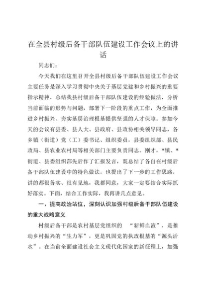 / 【七哥公文】2025年:在全县村级后备干部队伍建设工作会议上的讲话+更多免费公文+VX:QiGeGongWen2024