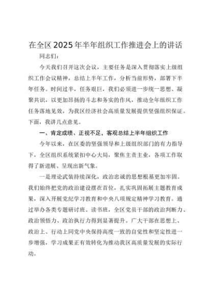 / 【七哥公文】2025年:在全区2025年半年组织工作推进会上的讲话+更多免费公文+VX:QiGeGongWen2024