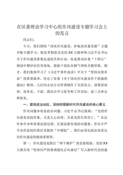/ 【七哥公文】2025年:在区委理论学习中心组作风建设专题学习会上的发言+更多免费公文+VX:QiGeGongWen2024