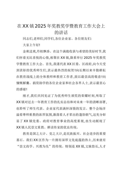 【七哥公文】2025年:在XX镇2025年奖教奖学暨教育工作大会上的讲话+更多免费公文+VX:QiGeGongWen2024