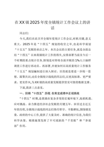 / 【七哥公文】2025年:在XX镇2025年度全镇统计工作会议上的讲话+更多免费公文+VX:QiGeGongWen2024