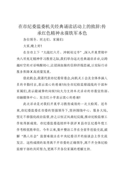 【七哥公文】2025年:在市纪委监委机关经典诵读活动上的致辞传承红色精神永葆铁军本色+更多免费公文+VX:QiGeGongWen2024