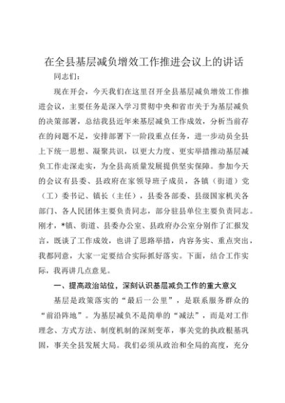 / 【七哥公文】2025年:在全县基层减负增效工作推进会议上的讲话+更多免费公文+VX:QiGeGongWen2024