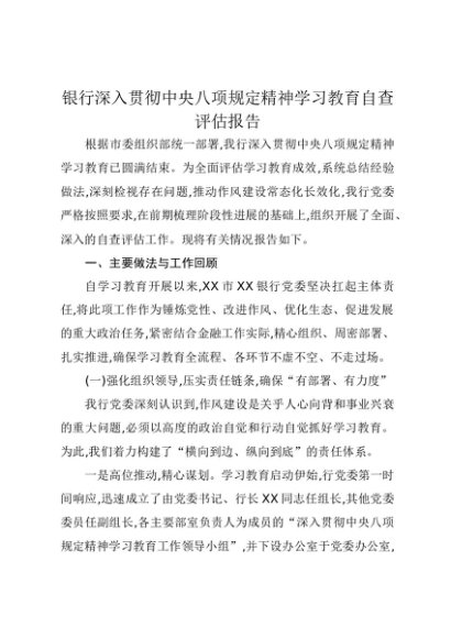【七哥公文】2025年:银行深入贯彻中央八项规定精神学习教育自查评估报告+更多免费公文+VX:QiGeGongWen2024