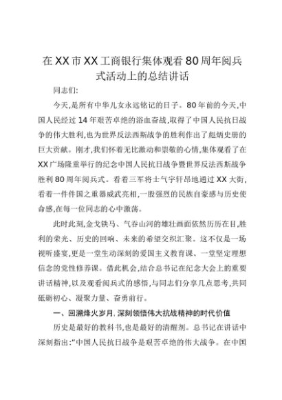 【七哥公文】2025年:在XX市XX工商银行集体观看80周年阅兵式活动上的总结讲话+更多免费公文+VX:QiGeGongWen2024