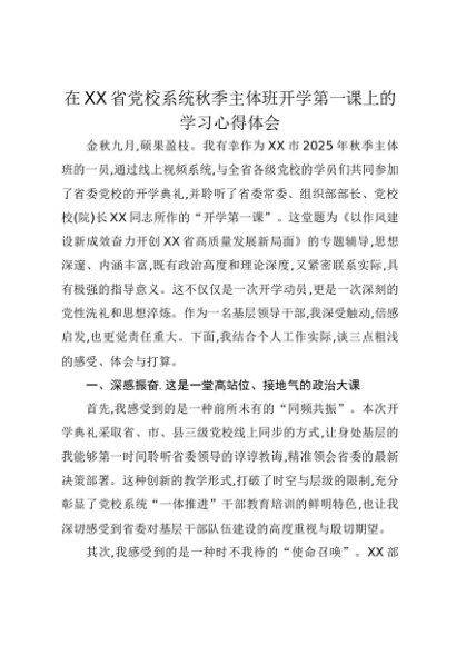 【七哥公文】2025年:在XX省党校系统秋季主体班开学第一课上的学习心得体会+更多免费公文+VX:QiGeGongWen2024