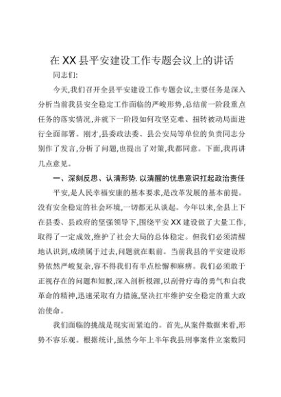 / 【七哥公文】2025年:在XX县平安建设工作专题会议上的讲话+更多免费公文+VX:QiGeGongWen2024