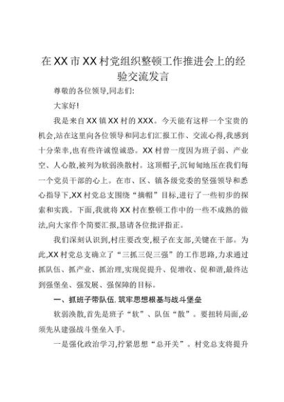 【七哥公文】2025年:在XX市XX村党组织整顿工作推进会上的经验交流发言+更多免费公文+VX:QiGeGongWen2024