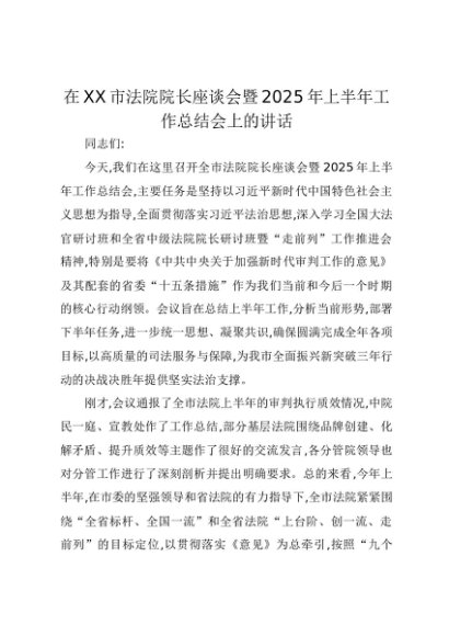 【七哥公文】2025年:在XX市法院院长座谈会暨2025年上半年工作总结会上的讲话+更多免费公文+VX:QiGeGongWen2024